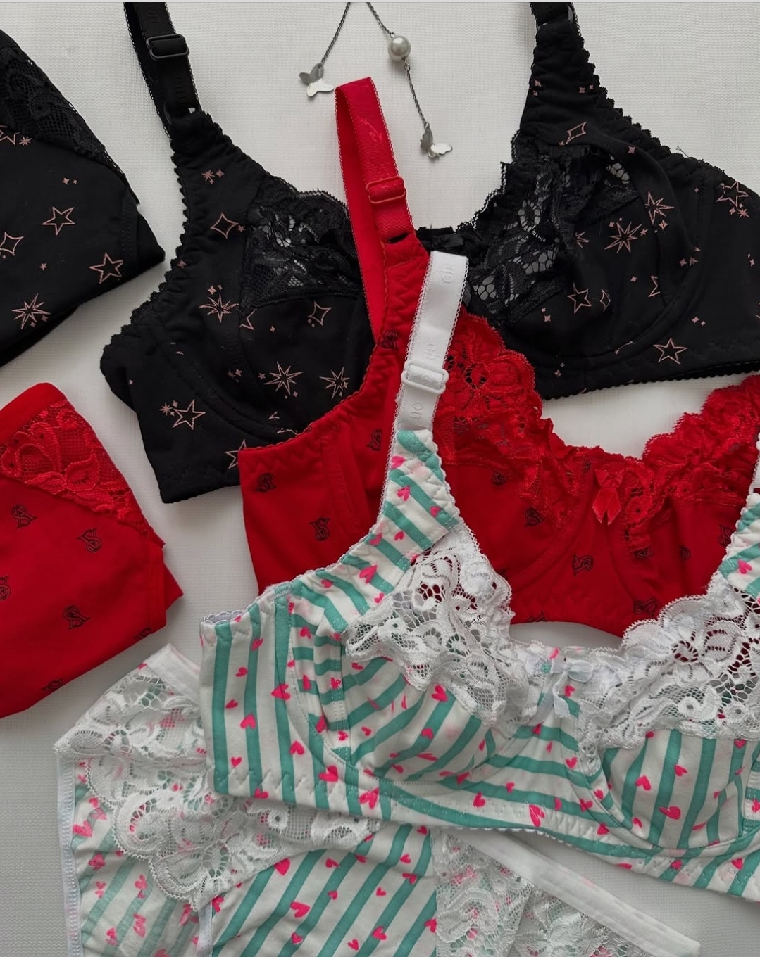 ست شورت سوتین نخی طرحدار بالا گیپور فنردار فلامینگو سایز ۷۵_۹۰کد۲۰۲۳۹۸👙بسته 4 تایی 🏷 کیفیت بسیار عالی 🎗سایز : ۷۵_۸۰_۸۵_۹۰ 👙هر سایز سه ست در جین 👙رنگ بندی طبق عکس 👙سوتین نخی طرحدار بالا گیپور فنردار.شورت بغل دانتل کف دولایه نخ پنبه 👙رنگهای بسیار زیبا و درجه یک کار شده 🌈رنگبندی هرپک ۴تایی شامل یک رنگ و چهار سایز.اگر رنگ خاصی مد نظرتونه بفرمایید و یا داخل توضیحات سایت بنویسید 💸 👙قیمت پک ۴ تایی :👇👇